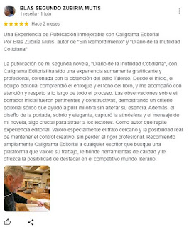 Rafael López, autor de Caligrama Editorial, compartió recientemente sus impresiones sobre su experiencia con la editorial en reseñas de Google. Su primera novela, «Cuando ya no estás», se publicó con la ayuda de CALIGRAMA, y no podría estar más contento con el resultado.