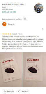 Diego SC, otro autor verificado de Punto Rojo Libros, elogió a la editorial por imprimir su libro «El Mouse». La verdad sobre la tecnología actual. La historia del ratón y otros inventos». Expresó su satisfacción por la calidad del libro impreso y expresó sus esperanzas de éxito, incluida la posibilidad de una película o una serie de Netflix basada en la historia.